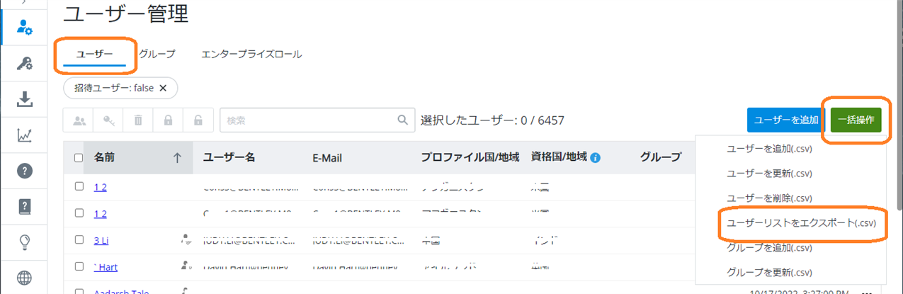 注 1:組織が Bentley IMS と連携している場合、以下に示すようにユーザーを手動で追加する必要はありません。新しいユーザーは、ジャストインタイム プロビジョニングを介して初めてログインするときに自動的に作成されます。詳細については、 フェデレーションの紹介ページをご覧ください。必要に応じて、フェデレーション プロセスを開始するためのリクエストを送信してください。