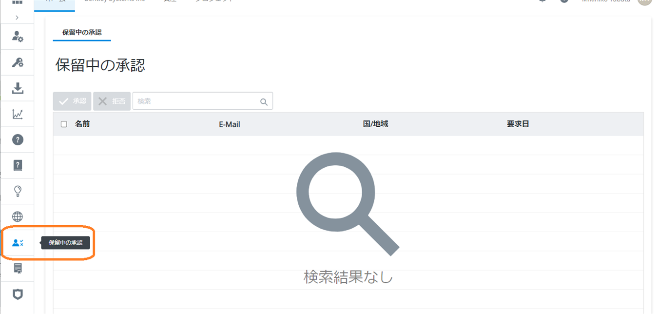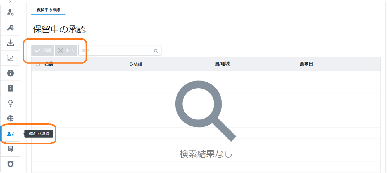 1. [ユーザー管理] 画面で [承認待ち] アイコンをクリックして、承認待ちのユーザーを表示します。