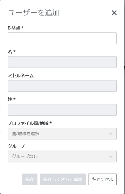 2. Email、名、姓、プロファイル国(日本)の各フィールドを埋め、保存ボタンを押します。