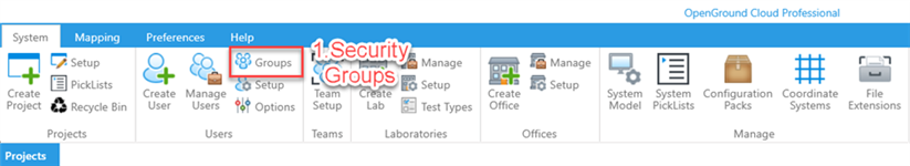 Note: You can delete security groups, however OpenGround will not allow deletion of groups that have been already assigned to a user and will give an error message.