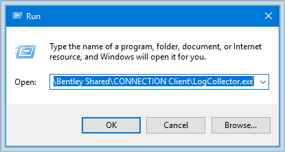 Type "%CommonProgramFiles%\Bentley Shared\CONNECTION Client\LogCollector.exe"