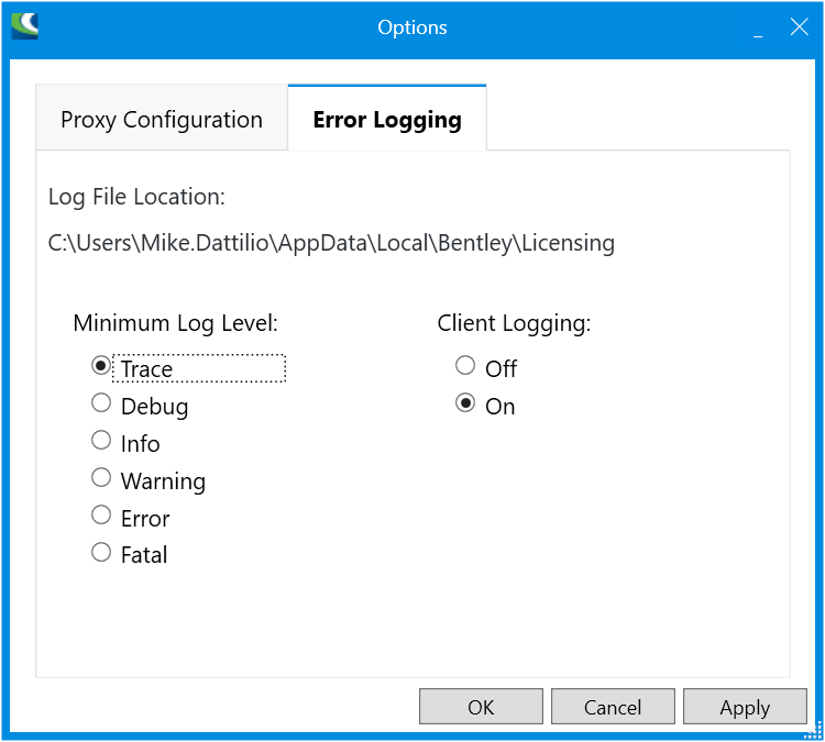 Send log files as an attachment to the service ticket back to Bentley for review.