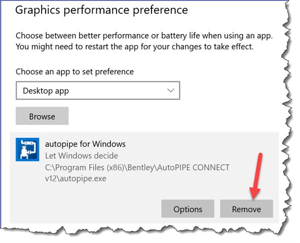 How to force AutoPIPE to use a specific graphics card?