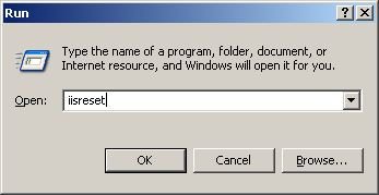 Achtung - Bevor Sie hier mit OK bestätigen, führen Sie bitte über Start > ausführen ein IISRESET aus, damit die geänderten Daten auch dem Webserver zur Verfügung stehen: