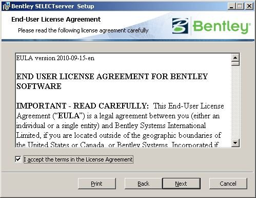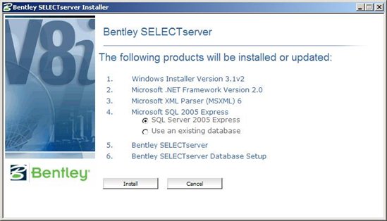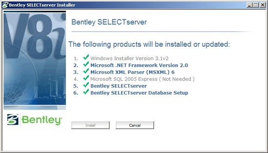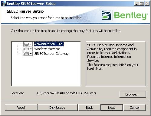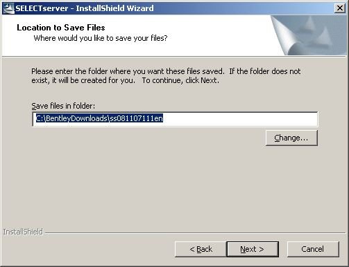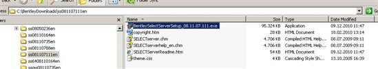 Wechseln Sie nun in das Verzeichnis, das Sie vorher bestätigt oder korrigiert haben und starten dort folgendes Programm: BentleySelectServerSetup_08.11.07.111.exe, hier der Inhalt dieses Verzeichnisses:
