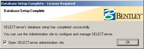 Nach dem Update der Datenbank erscheint folgende Maske mit der Möglichkeit die Administratorseite des SelectServers zu öffnen:
