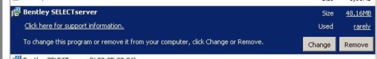 Deinstallation des alten Selectservers (unter Systemsteuerung > Software): Suchen Sie in der Liste der installierten Programme den "Bentley SELECTserver" und deinstallieren Sie diese Version: