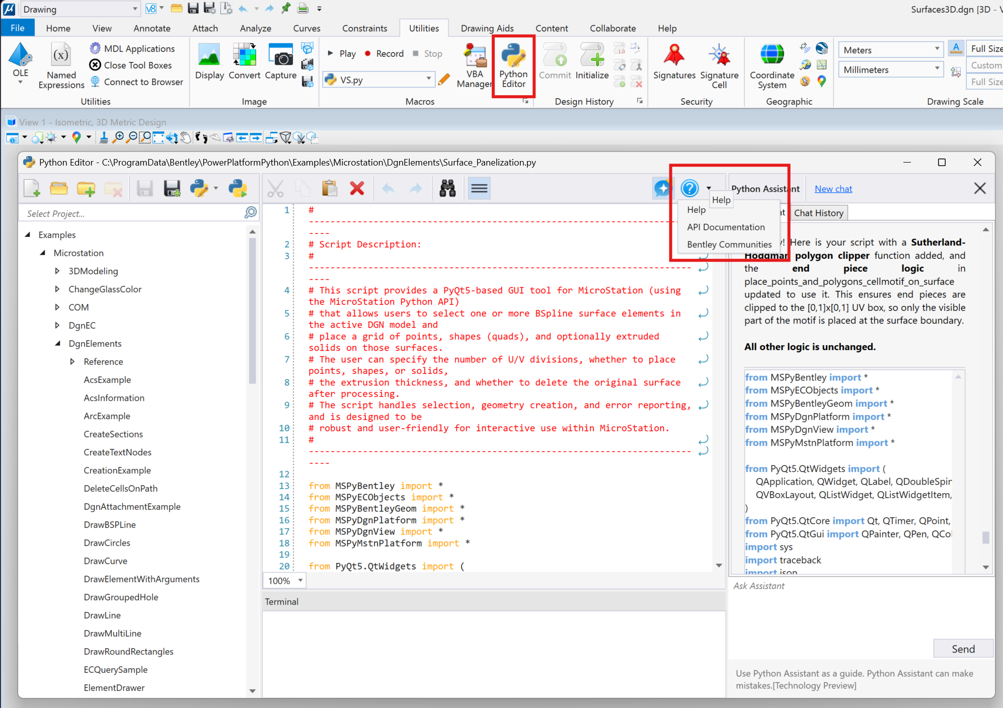 MicroStation Python Assistant (NEW FEATURE: v25.0.0)