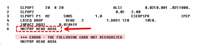 I received the below error mentioning that the MATPRP HEAD card cannot be recognized. How can I resolve this?