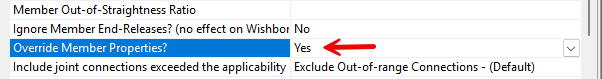 If the input properties of a given member differ from calculated properties, by default, the program sets the member to elastic and reports a warning message. When we enter 'C' on column 54 of the CLPOP2 line, SACS will override the input properties with calculated properties and assume the member as elastoplastic.