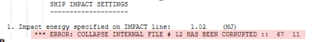 I'm using the Standard Collapse to run a Ship Impact analysis, but the analysis stops with this error. Why is it happening? Please advise on the resolution.