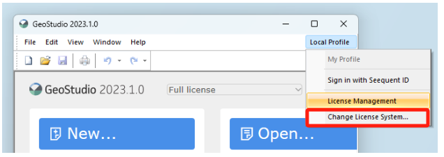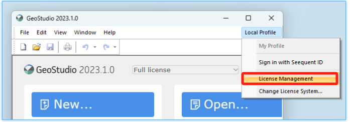 - 在 GeoStudio 2021.4 及更早版本中,可通过帮助菜单访问“许可证管理”。