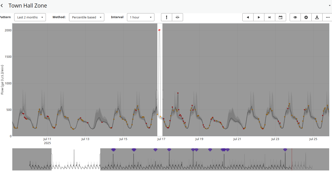 The leakage geolocation feature is available to all users, being simple and quick to use. There are two main workflows, one that starts from an automatic zone event generated by the software, another one that starts by the user manually creating a zone event.