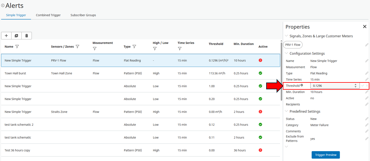 After the user has configured those type of alerts in the administration, it might happen that in particular cases false flat reading alerts are being generated (when it shouldn't) or too many flat reading events. If that is the case, the admin user should change the threshold value (or variance) that is defined in the administration alerts page (figure 2). WaterSight already assumes default values, and those should only be changed in case flat reading events are not being properly generated. User should consider the following: