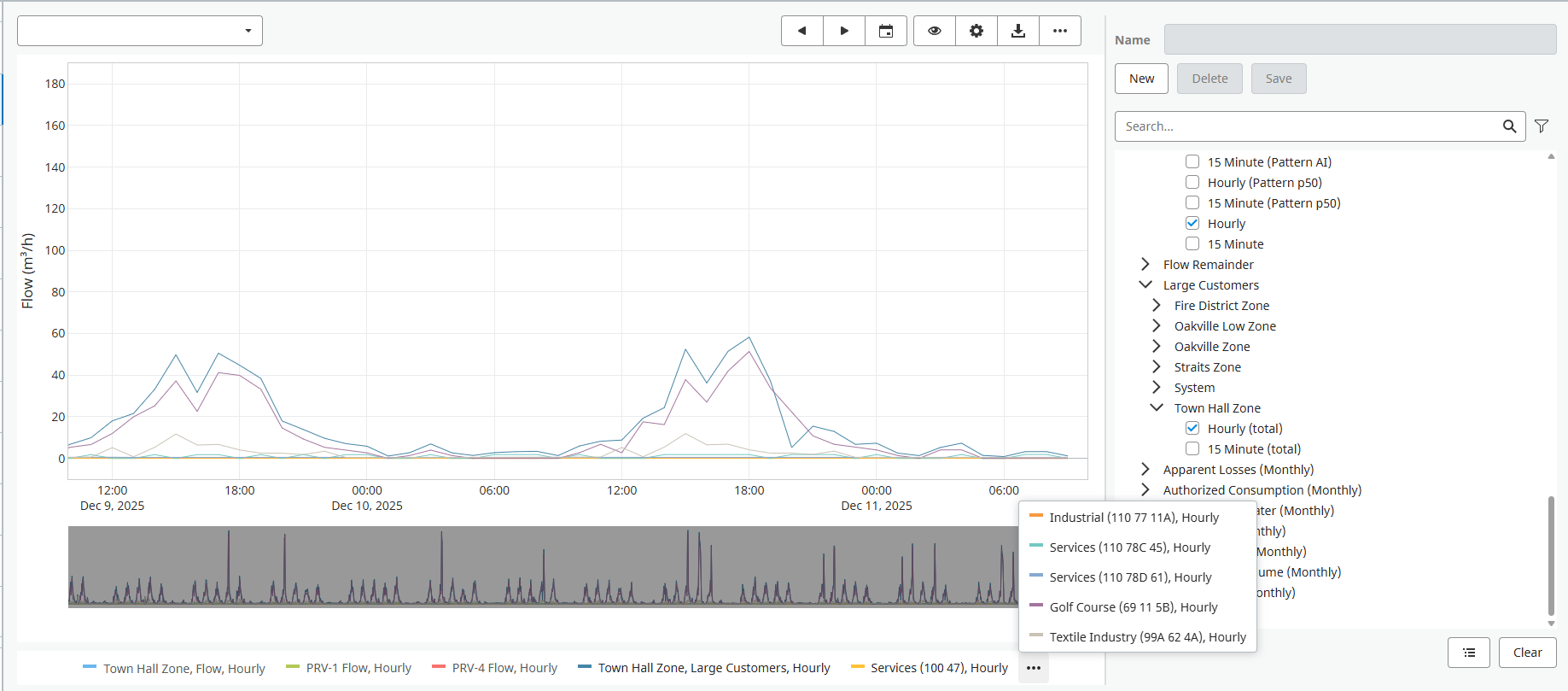 The Flow Remainder time series can also be enabled and represents the difference between the total zone flow and the total large customer flow series.