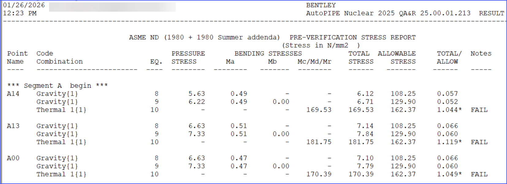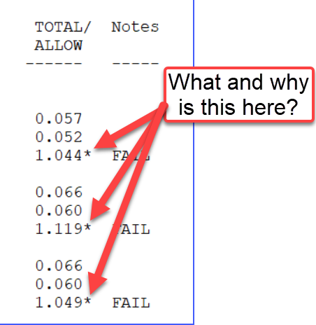 Anyone who is familiar with AutoPIPE's reports know that when there is an asterisk, strange nomenclature besides expected values, or such that they need to investigate the entire report to see exactly the meaning.