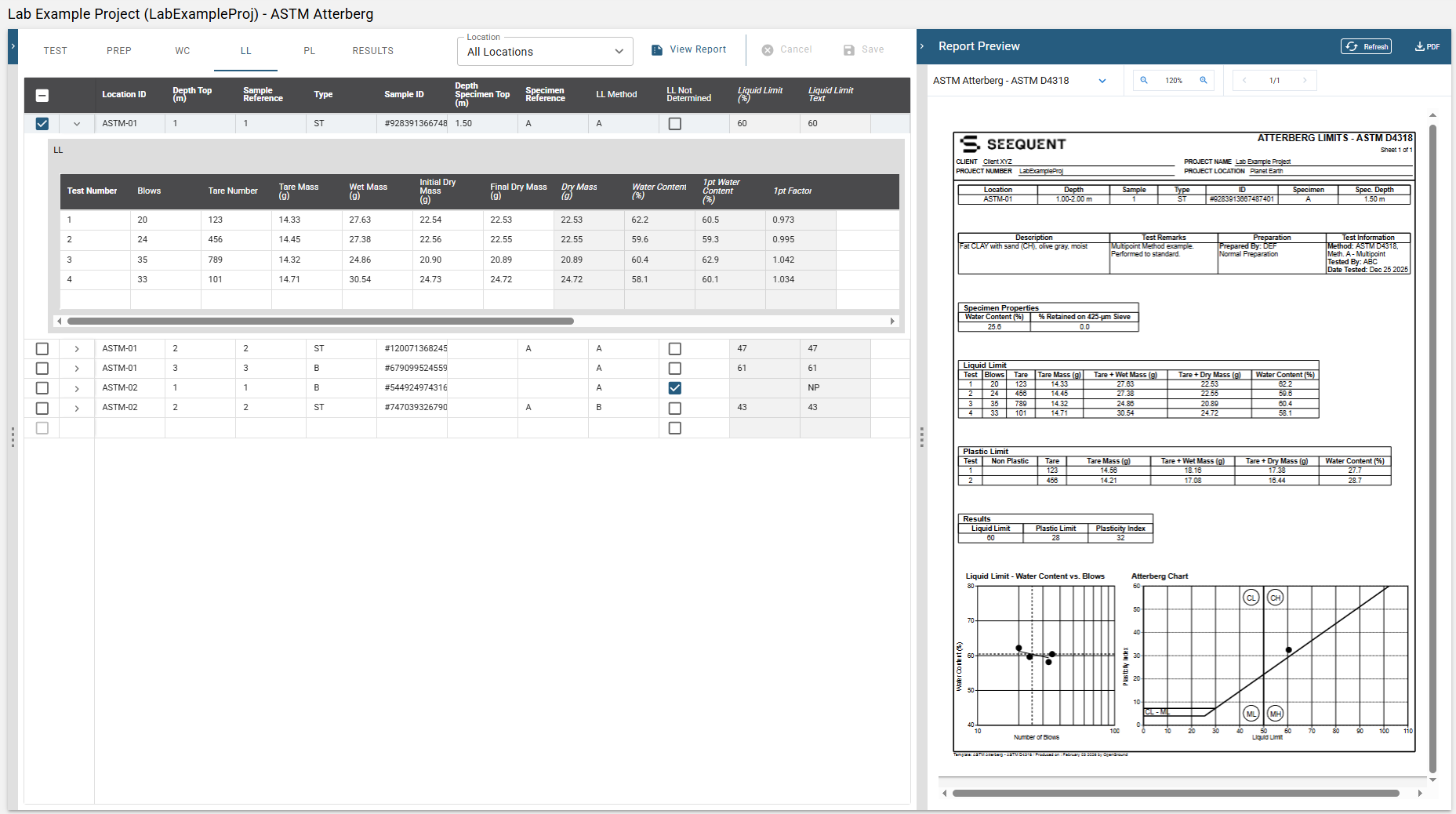OpenGround Lab allows users to enter data, perform calculations, and generate test reports directly within the OpenGround platform. The workflow is centered around dedicated laboratory projects. Once testing is complete, data can be published directly to engineering projects, eliminating the need for manual data re-entry or file-based transfers.