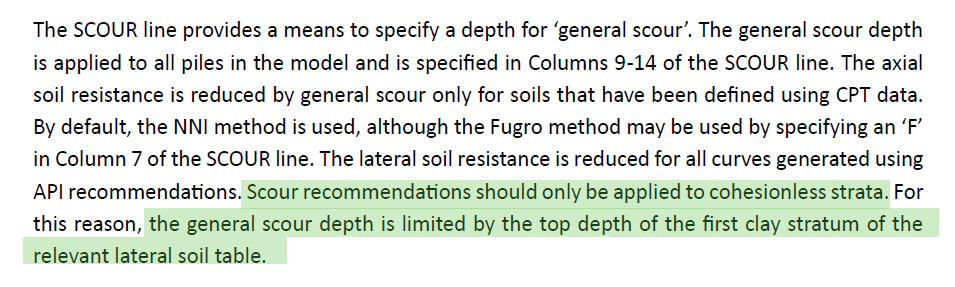 The behavior is governed by how API General Scour is applied in SACS PSI. According to the SACS PSI Manual, Section 2.4.3.6 – Applying API General Scour Recommendations: