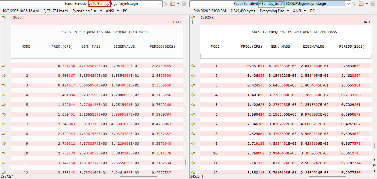 When running an eigenvalue (modal) analysis in SACS using a foundation superelement generated by PSI, users may observe that changing the SCOUR depth does not change the extracted eigenvalues or natural frequencies. This behavior is expected when the upper soil strata are defined as cohesive soils (clays).