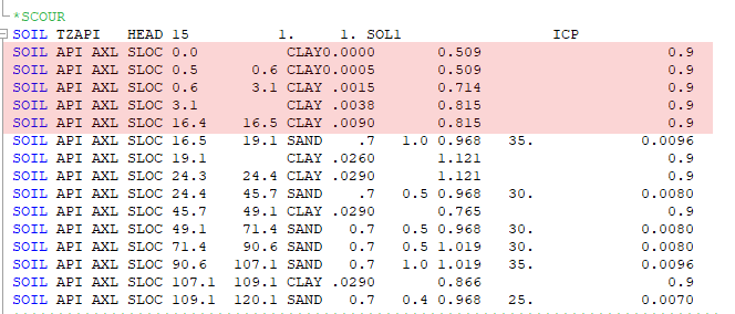 1. Review the PSI soil profile: If the top layers are clay, SCOUR will have no effective influence on the superelement stiffness.