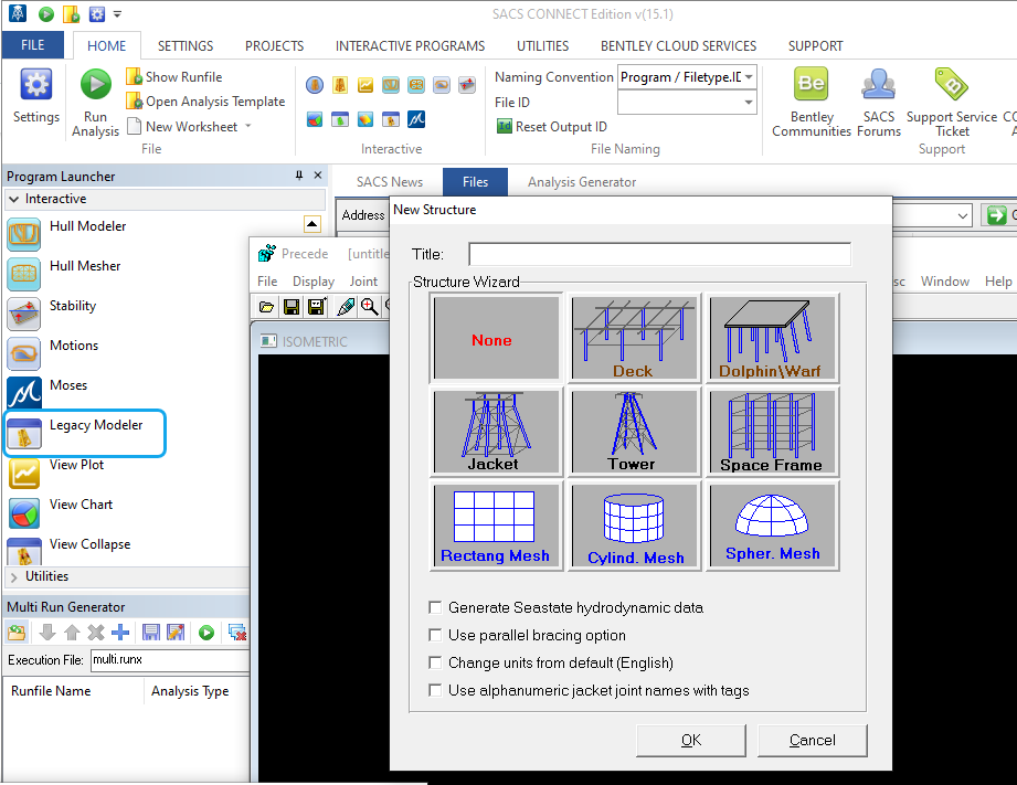 #To use Legacy modeler in SACS 15.1: copy precedelegacy.bmp and precedelegacy.exe from older version i.e SACS 14.3 and paste it in the SACS 15.1 installation folder.