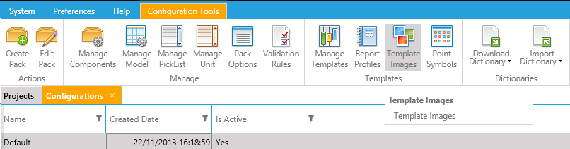 From within here, select the configuration pack that your project belongs to, then select 'Template Images' from the ribbon;