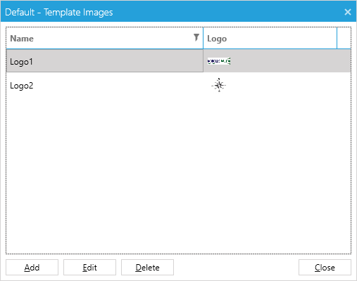 From the 'Template Images' window select the logo that you wish to replace and select the 'Edit' button: