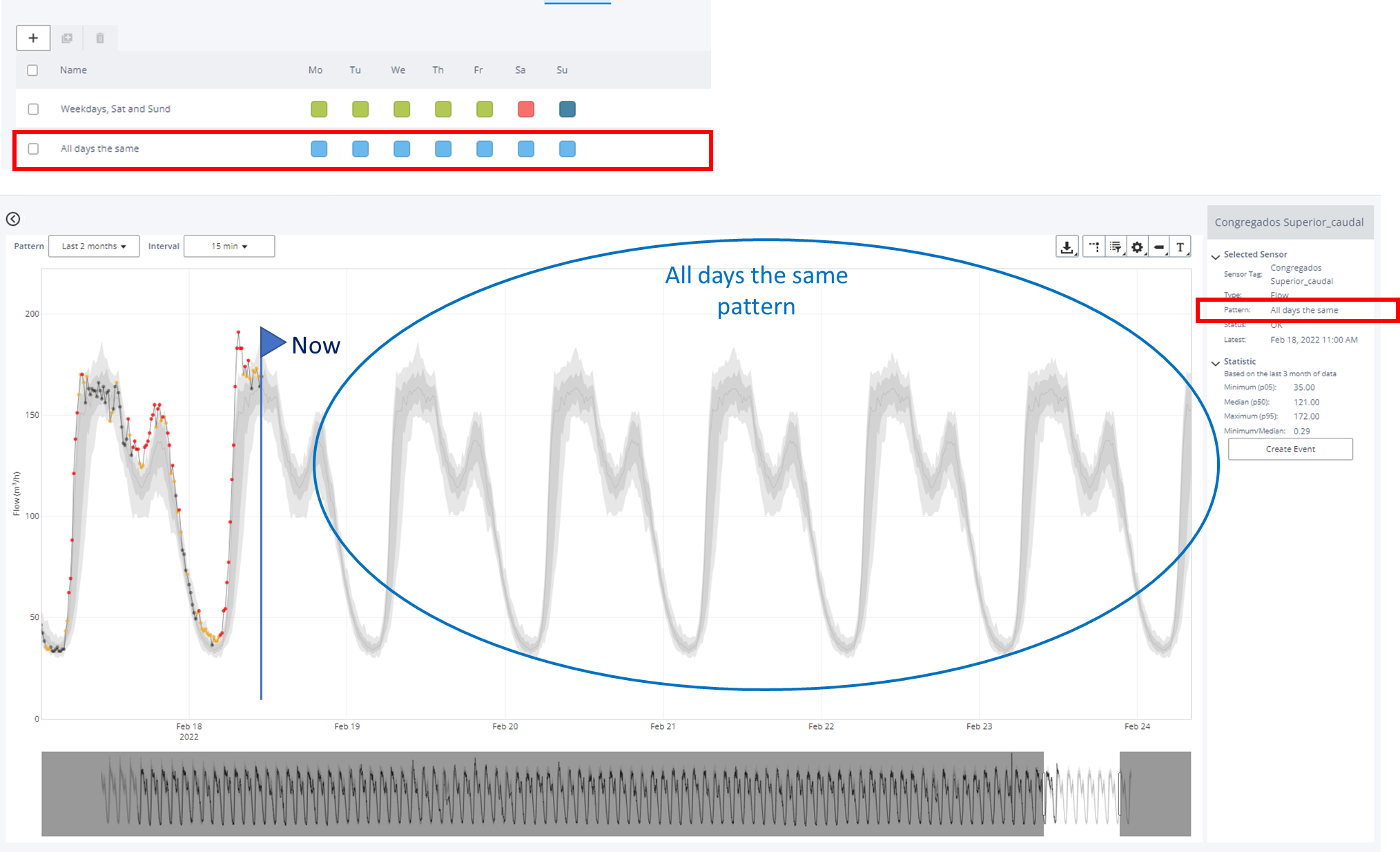 Figure 1 - Default Pattern defined in the settings (above) and how gets displayed in WaterSight (below)
