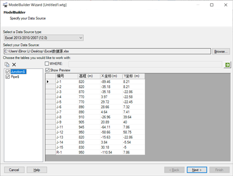 将外部数据导入到模型中,需要用到OpenFlows系列产品中的一个通用工具Model Builder(建模器), 它可以利用外部数据快速的创建模型。建模器支持很多种类型的数据源,比如Excel,Cad, Shapefile, Access, Dgn, imodel等。本说明讲解怎么快速利用建模器把外部的EXCEL数据导入到模型中。