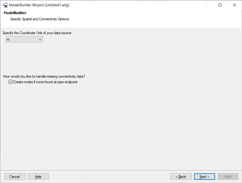 3)选择单位“m”,根据需要勾选当管道端点缺失时自动创建节点。
