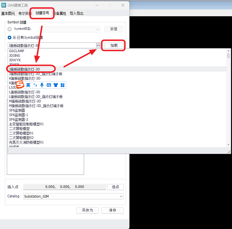 2.如果需要对某个模型进行复用,首先依然是在创建符号界面中,找到该模型,进行加载: