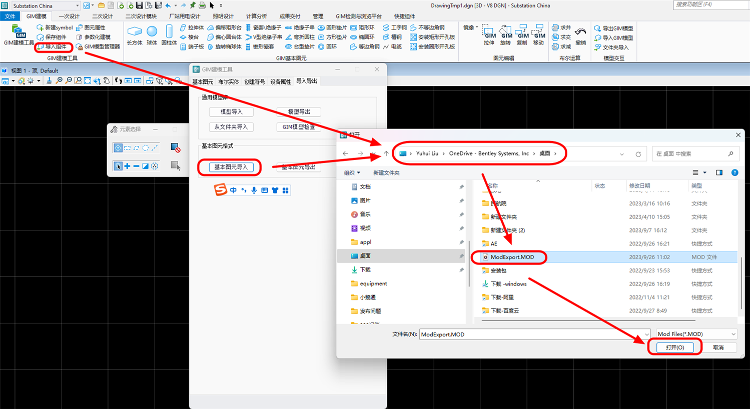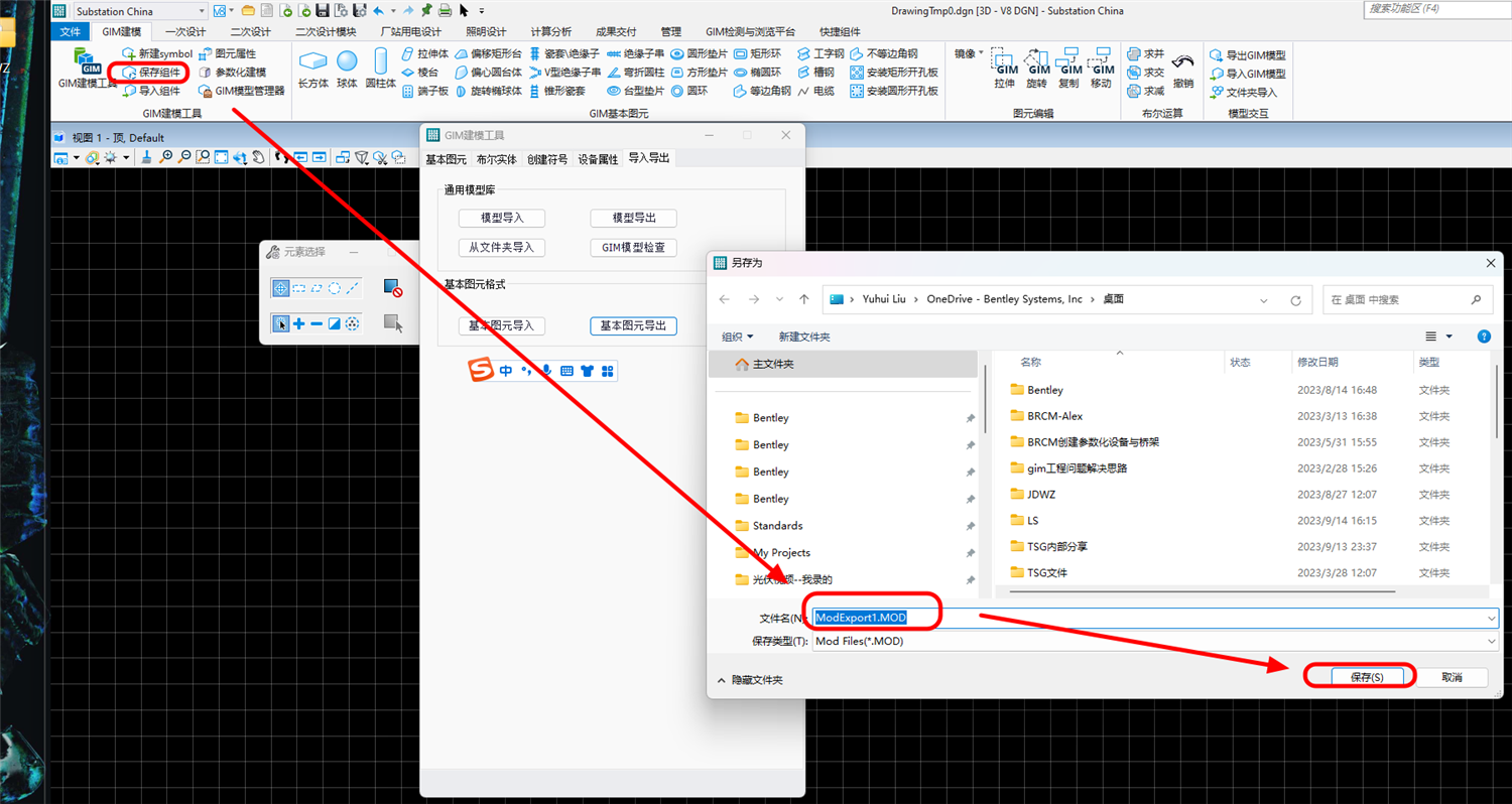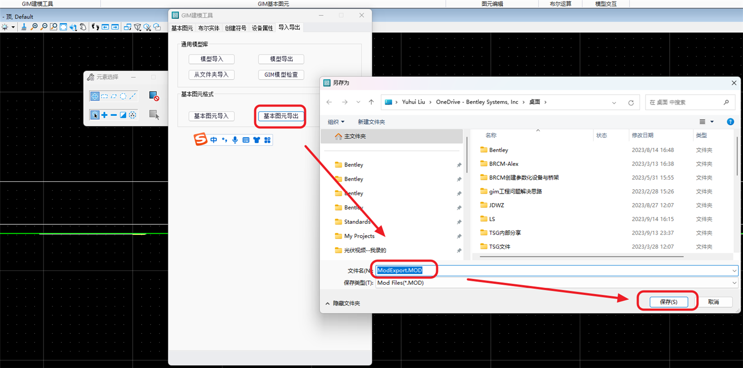 3.加载完成后,选择“基本图元导出”或者“保存组件”,为导出的mod文件命名及选择保存路径后,点击保存: