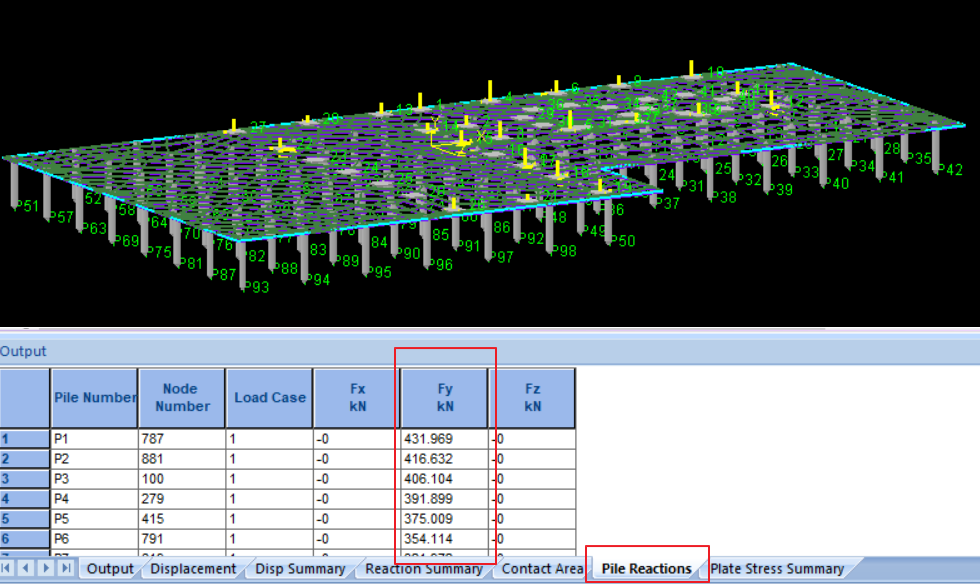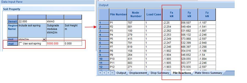 因此,此时桩的反力中仅有Fy受力,而其水平力等均会由筏板下的土弹簧承担。