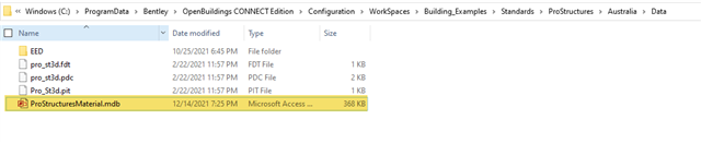Step 2: In Windows File Explorer, navigate to the path defined above and open the file named ProStructuresMaterial.mdb using MicroSoft Access.