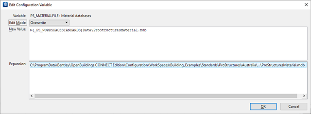 Step 1: Go to the Configuration Variables dialog, search for the configuration variable PS_MATERIALFILE and check the path that is defined. To access the Configuration Variables dialog,you can use the search field in the ribbon bar and then search for "Configuration Variables", or from the backstage choose Settings > Configuration > Configuration Variables.