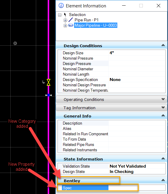 In this wiki article we will see how we can add new Category and New Property In OpenPlant PID. In Element Information of any component our requirement is to add new category and also to add new properties under it.