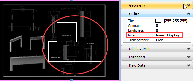 But after saving model as DWG file, Raster attachment is saved without inverted Display Colors. All annotations and components, which were placed on top of this Raster attachment, because of same white background, became invisible.