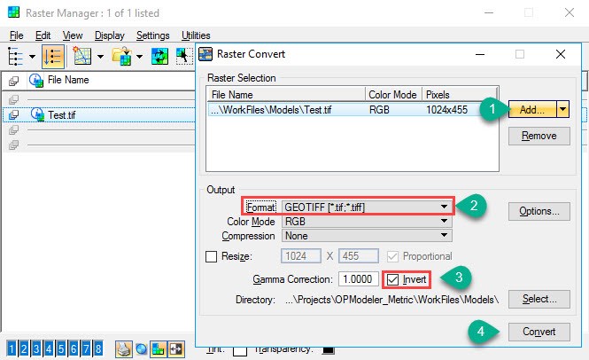 A *.tiff image file with white background as Raster attachment was attached in DGN model and then Display of this Raster attachment's Colors were inverted. Modeling background in OpenPlant Modeler by default is set to black color and after inverting Display of this Raster attachment's Colors, annotations and components are visible and can be placed and modeled without any issues.