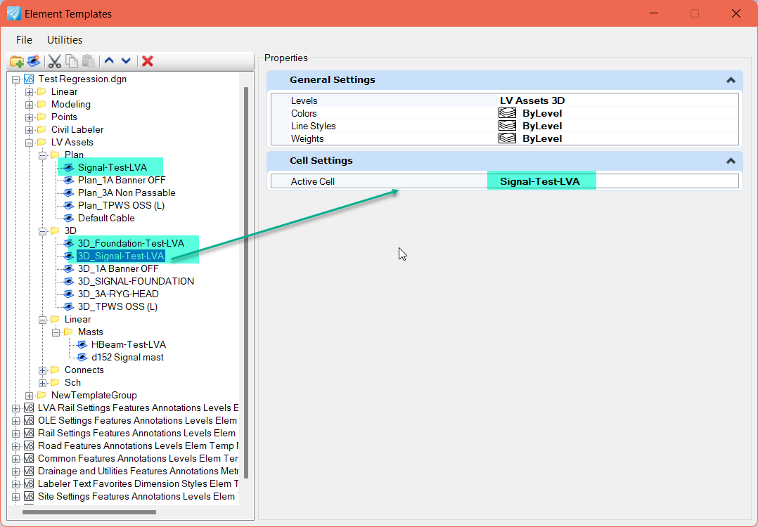 Example: LVA Rail Settings Features Annotations Levels Elem Temp Metric.dgnLib