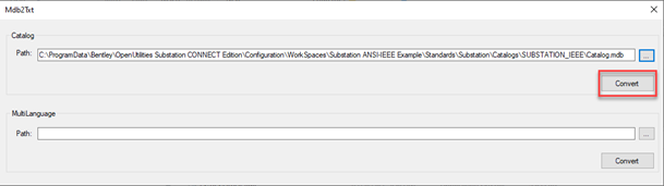 3. Open MDB to TXT conversion tool. Locate Mdb2Txt.exe in folder "C:\Program Files\Bentley\OpenUtilities Substation CONNECT Edition\Substation\Assemblies"