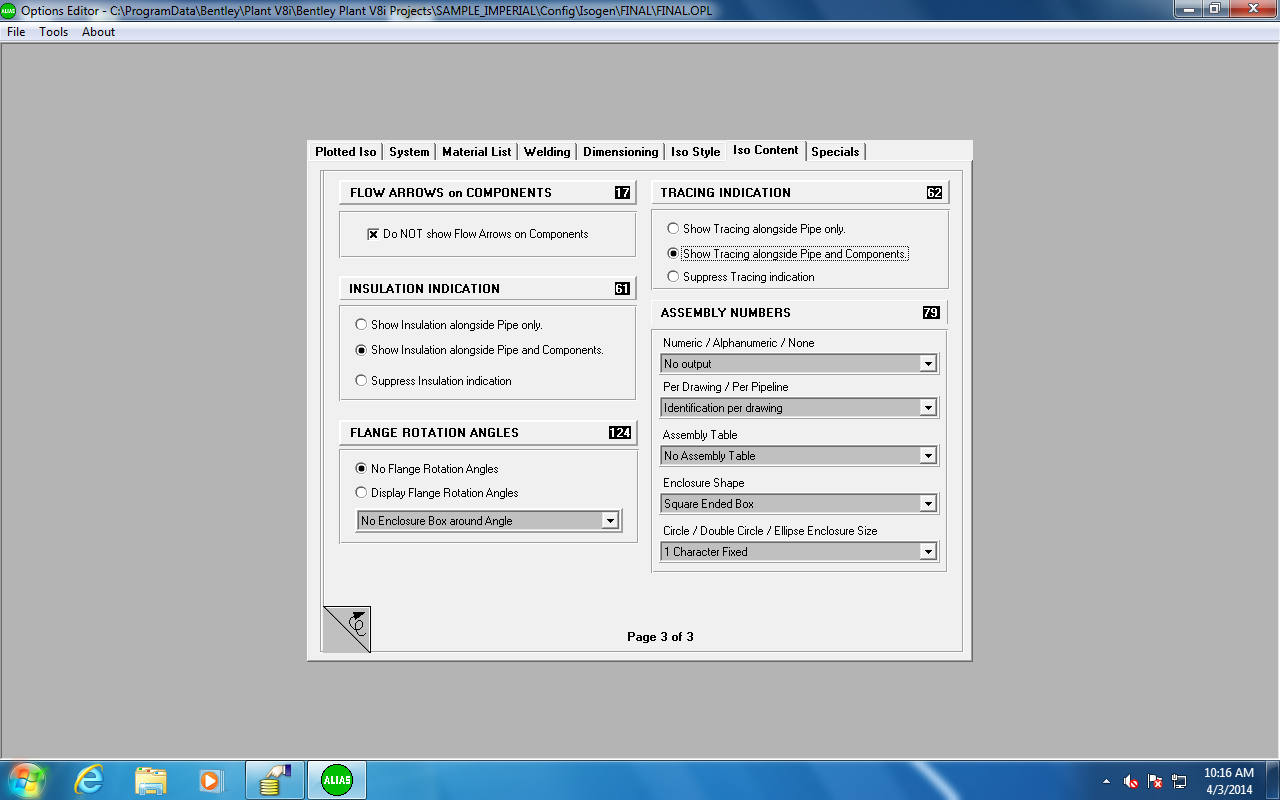 2. Go to Project Administrator> Isogen> Input >Option file. Change switch 62 as below, save and exit.