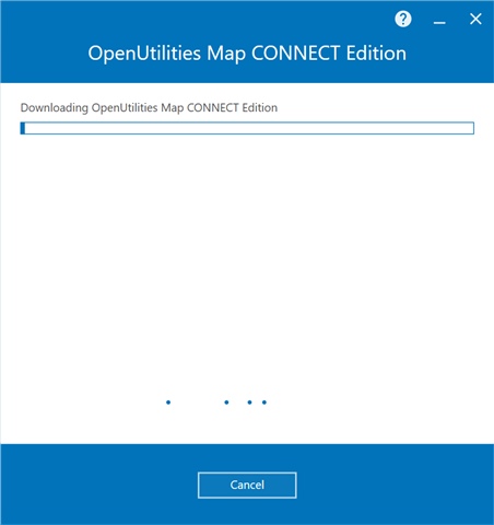 11. Click the ‘Install’ icon. The installation will begin and you will see a couple of different status bars. The first status bar will show 'Downloading OpenUtilities Map CONNECT Edition'. The second status bar will show 'Installing OpenUtilities Map CONNECT Edition. Once both of these status bars are complete, the Bentley OpenUtilities Map product will be installed on the machine.