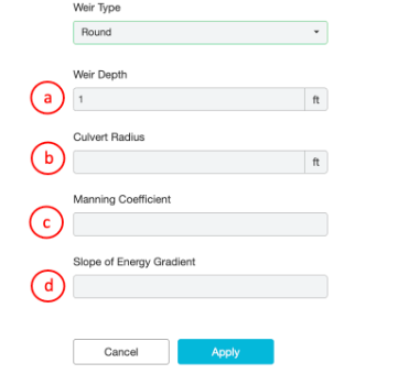 The Round Weir configuration requires four inputs.