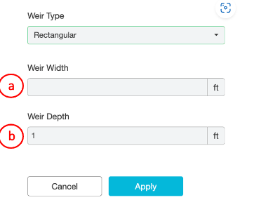 The rectangular weir configuration only requires two inputs.