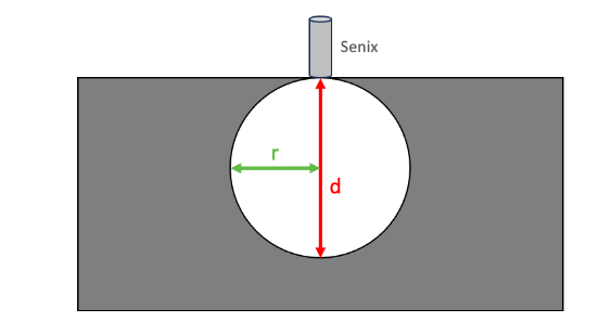 A. Weir Depth- Weir depth is the distance between the acoustic head of the Senix device and the bottom of the round weir, illustrated in red in the figure below.