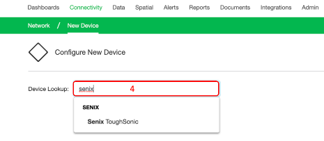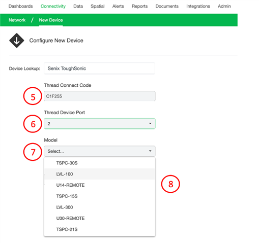 7. Select the ToughSonic sensor you have installed from the dropdown list. In most cases, the sensor is listed by the part number of the sensor. If you are unsure of the proper selection, please reach out to the customer support team for assistance.
