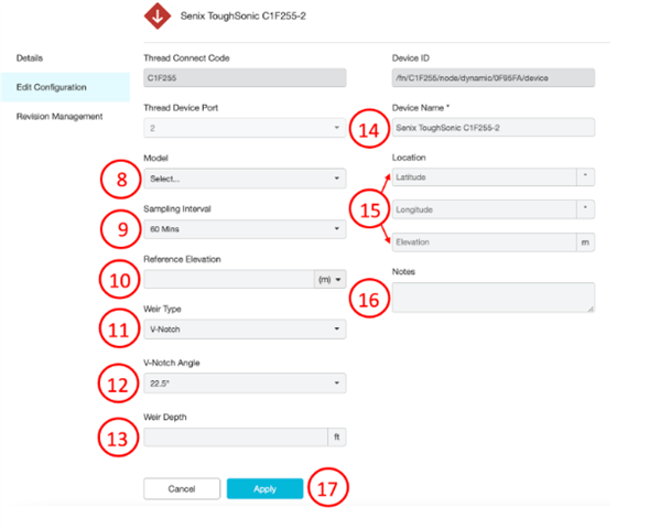 15. The user can input the sensor's location and elevation. This location information will allow the sensor to be displayed within the Spatial mapping feature.