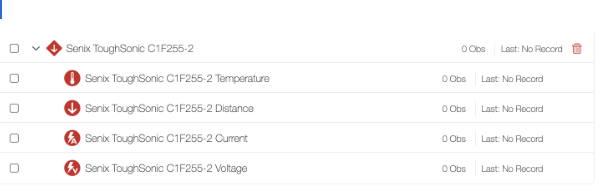 After setting up the Device in the steps above, four diagnostic sensors will be populated below the ToughSonic device in "Devices & Sensors". Many of the same configurations as above can be edited for each diagnostic sensor.