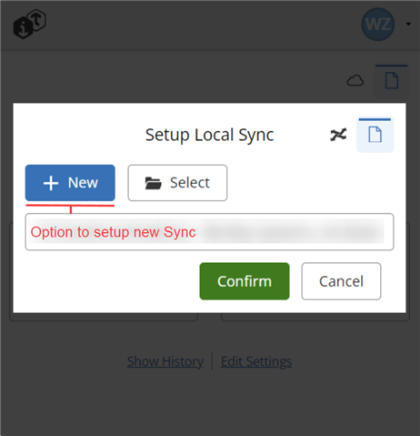 Once an existing sync is established, select or establish a new sync by clicking on the blue hyperlink: