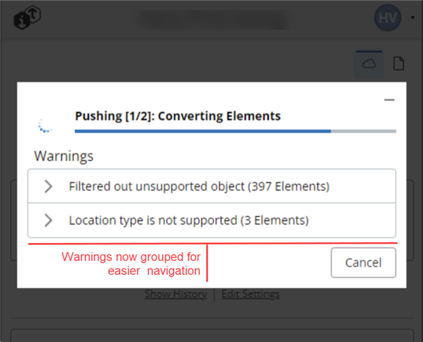 Across all host application's in-product cloud synchronization operation, status messaging has been grouped and streamlined.